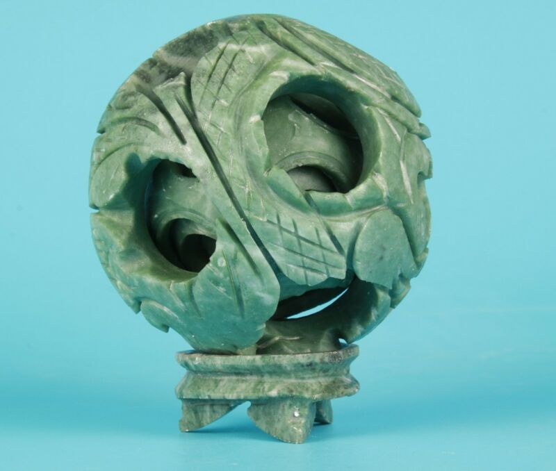 VINTAGE CHINESE NATURAL JADE BALL STATUE HAND-CARVED FURNITURE DECORATION GIFT