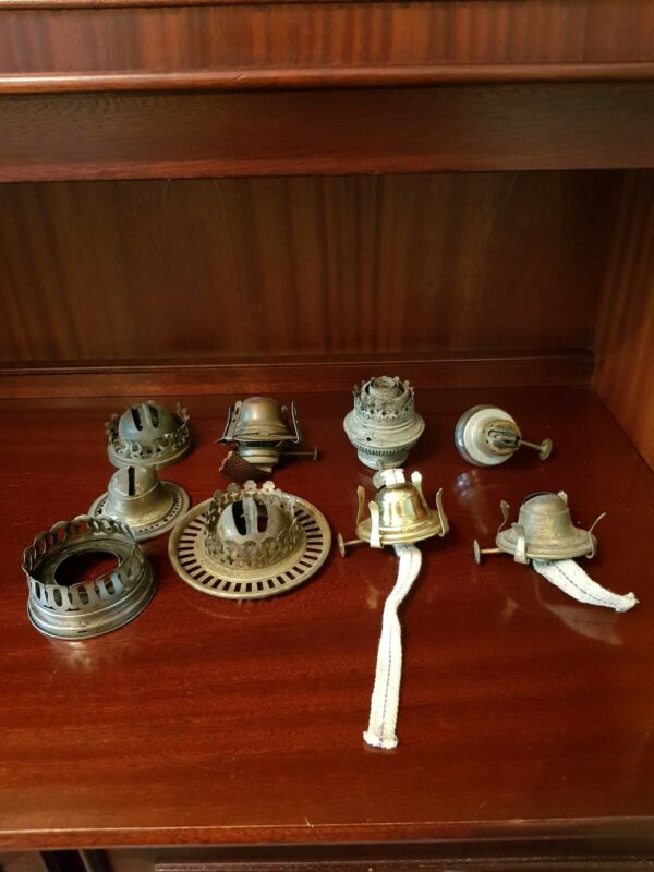 Collection of Antique Oil Lamp Burners & Assortment of Spares