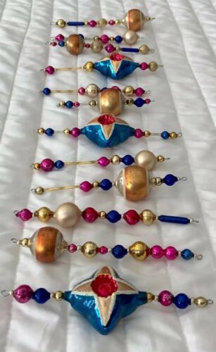 Vtg 12 Mercury Glass Bead Christmas Feather Tree Icicle Radko Shiny Bright