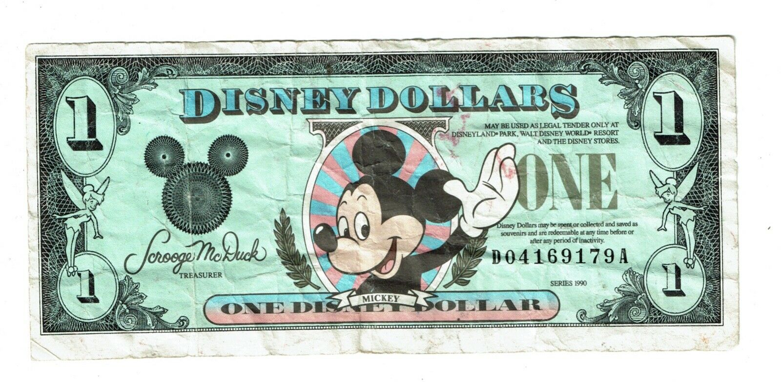 1990 $1 Disney Dollar Mickey Mouse, crinkles