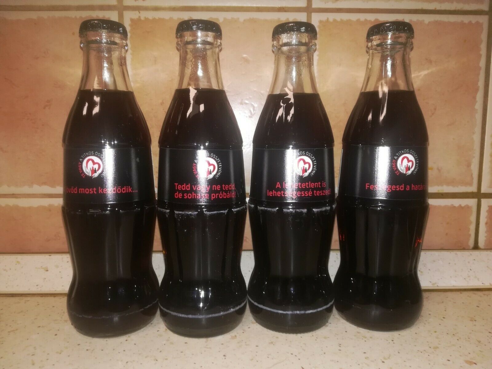 Rare Coca-Cola full glass bottle - unique labeled - hungarian label 4 pcs set