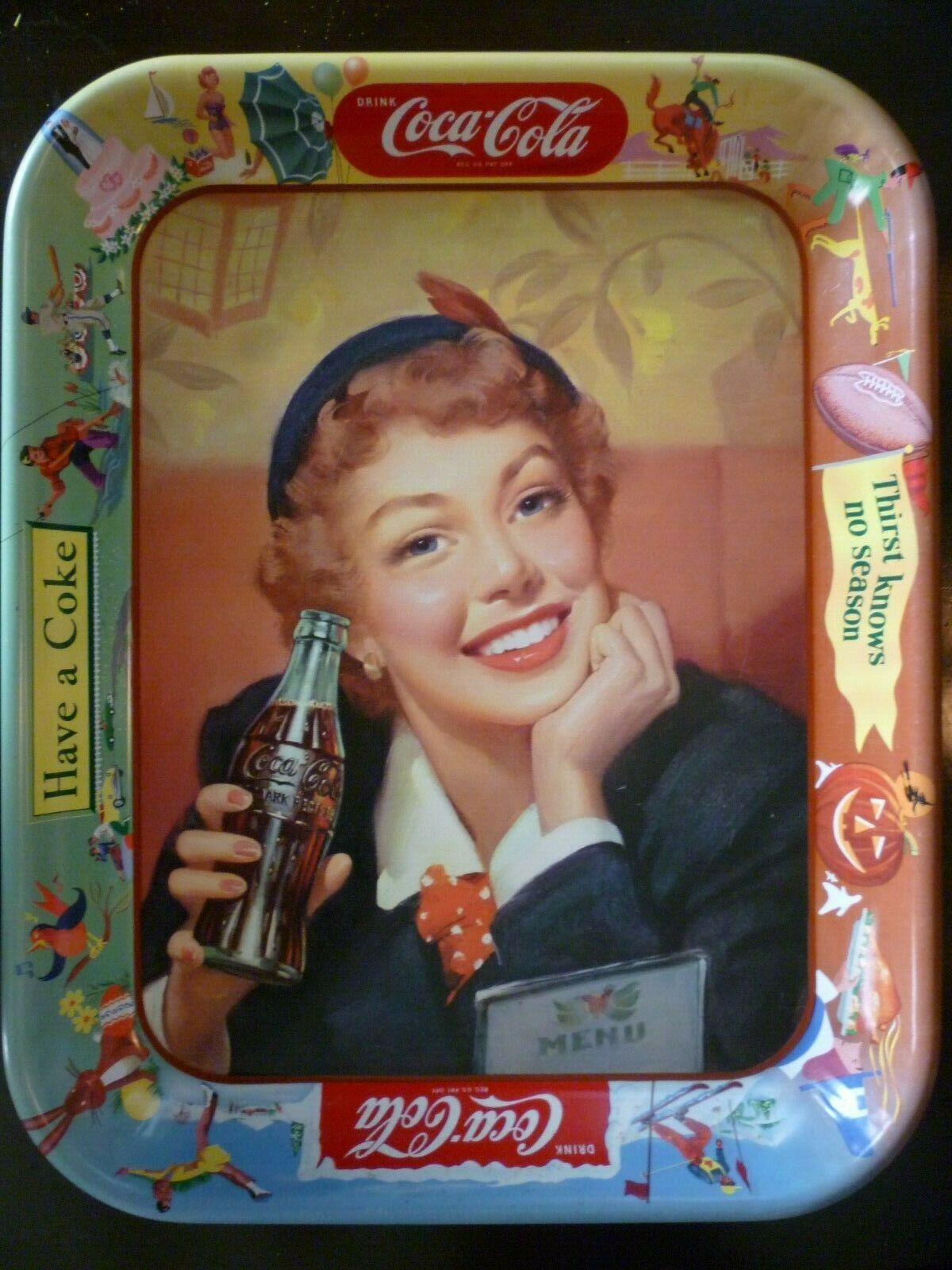 Title (ebay affiliate link): Vintage Reproduction Coca Cola Tray - Thirst Knows No Season (Approx. 10" x 13")