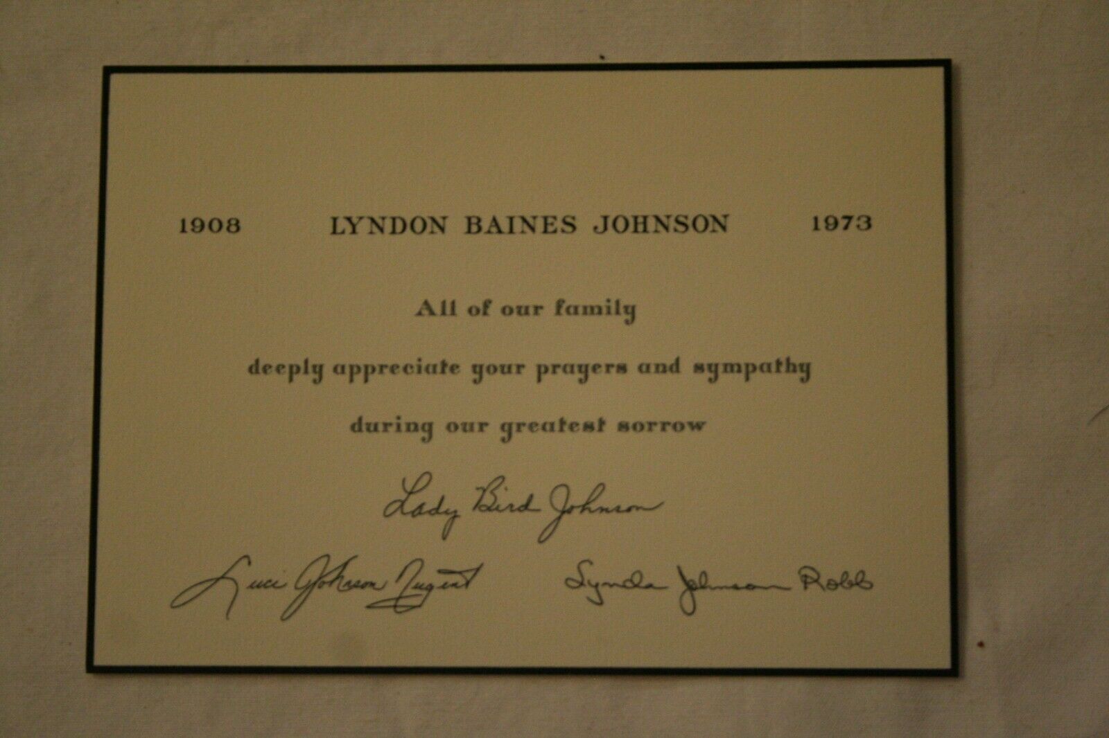 LYNDON BAINES JOHNSON SYMPATHY CARD FROM LADY BIRD JOHNSON