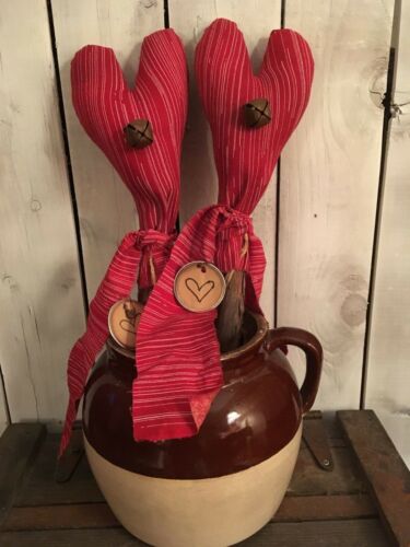 Title (ebay affiliate link): Primitive Doll Heart Doll Pokes Folk Art Doll Rusty Bell Crocks Jars Prim Label