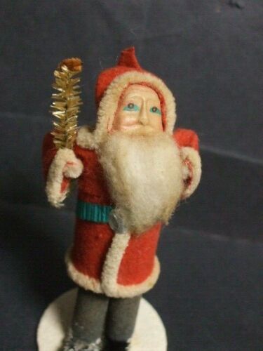 Title (ebay affiliate link): Santa Celluloid Face Felt Red Coat 4 Inches Vintage Spun Cotton Beard Vintage