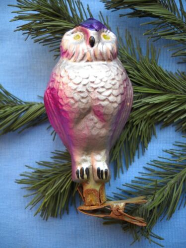 RUSSIAN ANTIQUE GLASS CHRISTMAS ORNAMENT OWL