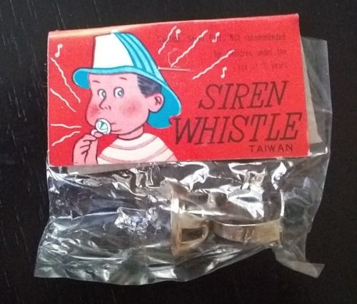 Title (ebay affiliate link): Vintage Siren Whistle Ring. New in package. Five and dime store style. NOS Metal