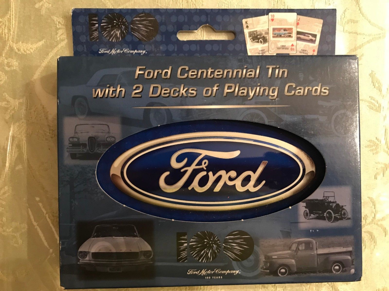 Title (ebay affiliate link): BRAND NEW FORD CENTENNIAL TIN WITH 2 DECKS OF PLAYING CARDS - FREE SHIPPING!!!