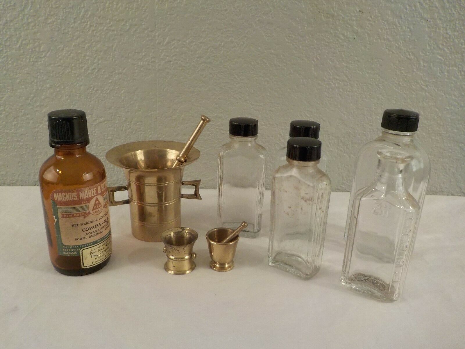 Title (ebay affiliate link): Vintage Lot Of Drugstore Apothecary Pharmacy Mortar Pestle Bottles