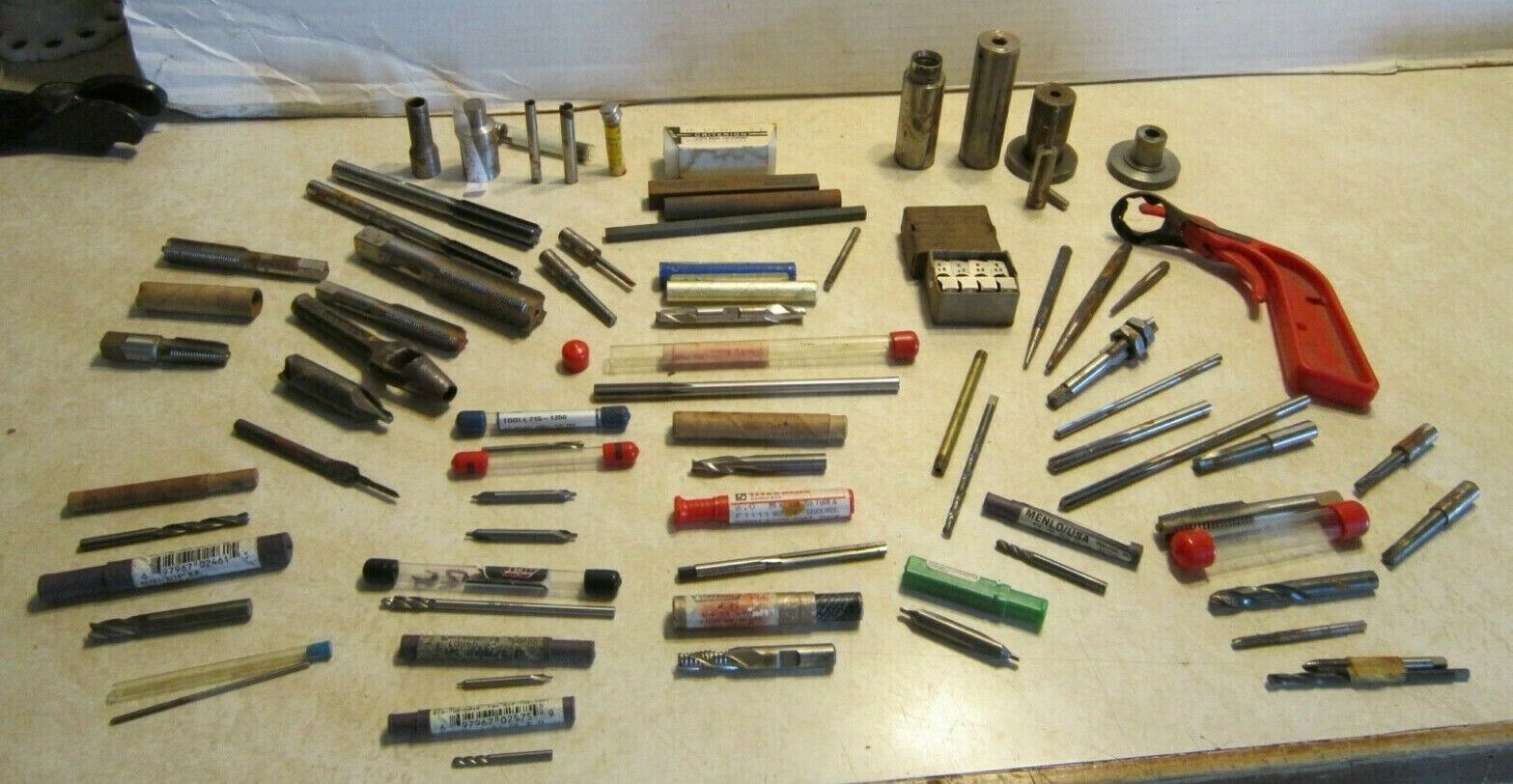 Title (ebay affiliate link): Huge Lot of Machinist Tools : Reamers End Mill Carbide Oilstone Home Made FF25