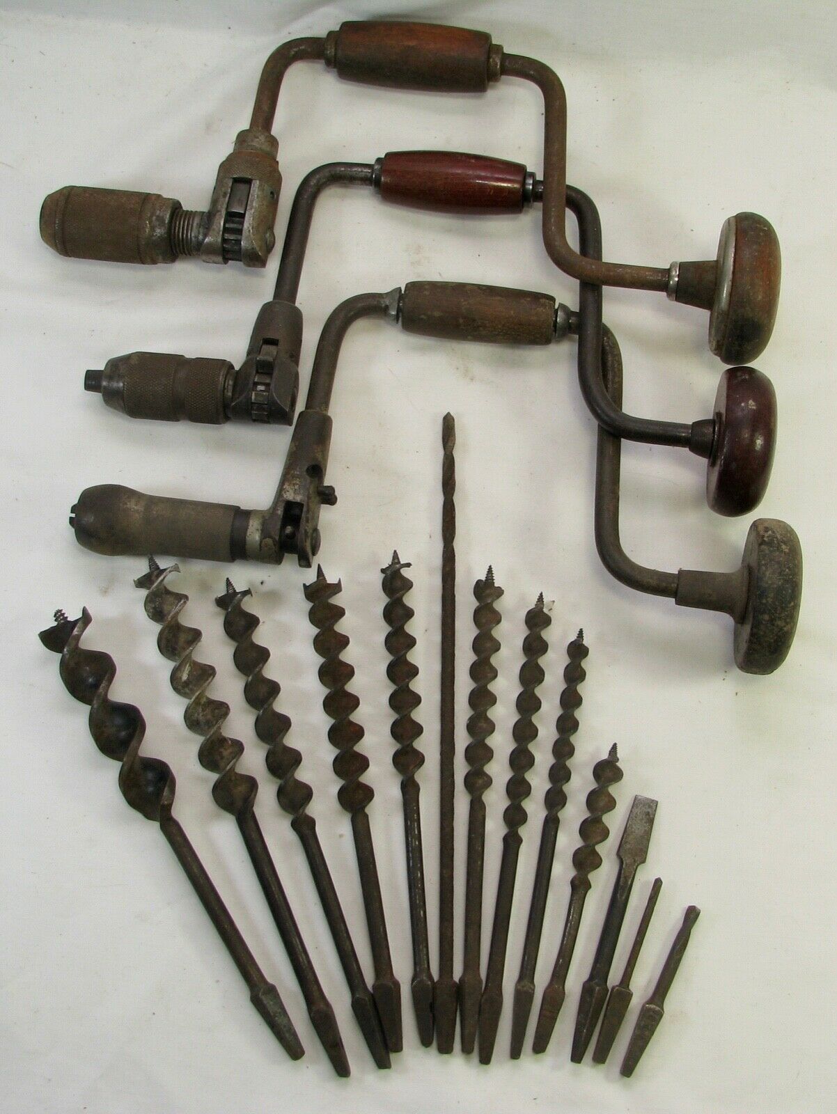 Title (ebay affiliate link): OLD ANTIQUE VINTAGE WOODWORKING TOOLS LOT - 3 BIT AND BRACES plus 10+ AUGERS