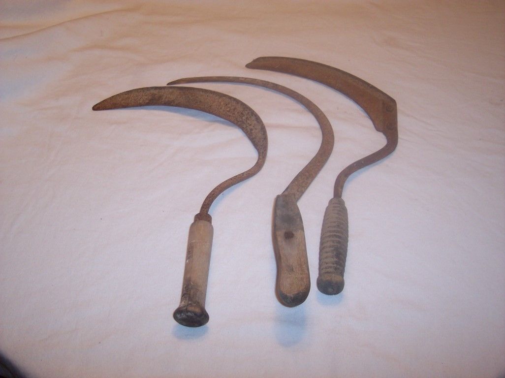 Title (ebay affiliate link): 3 ANTIQUE/VINTAGE ORIGINAL HAND MOWING SCYTHES!