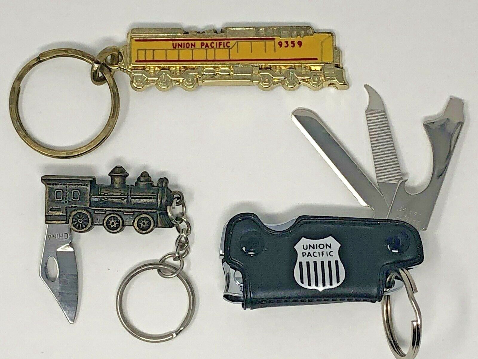 Lot of 3 Vintage Union Pacific Railroad Locomotive Key Chain Pocket Knives