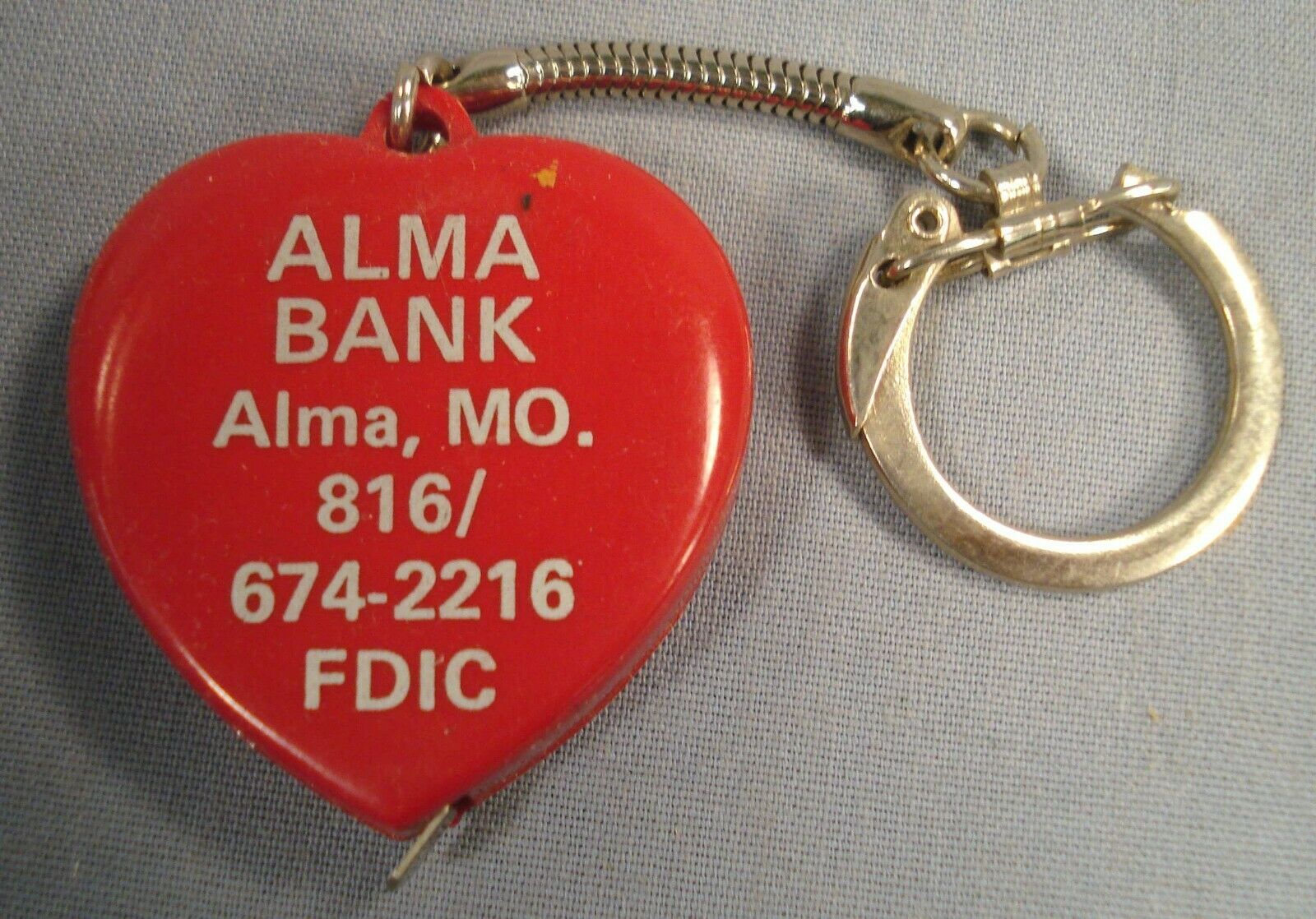 Vtg Alma Bank, Alma, MO Sewing Tape Measure / Key Chain Advertiser.