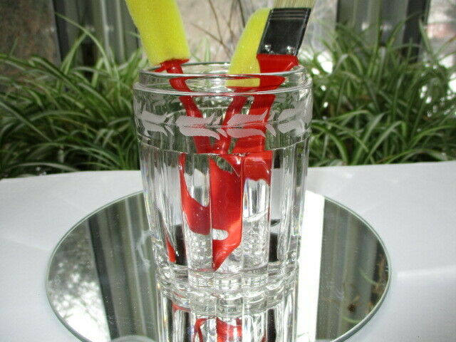 EAPG GLASS PICKLE CRUET JAR PANEL & ETCH TULIP NECKLACE REUSE MAKEUP BRUSH POT