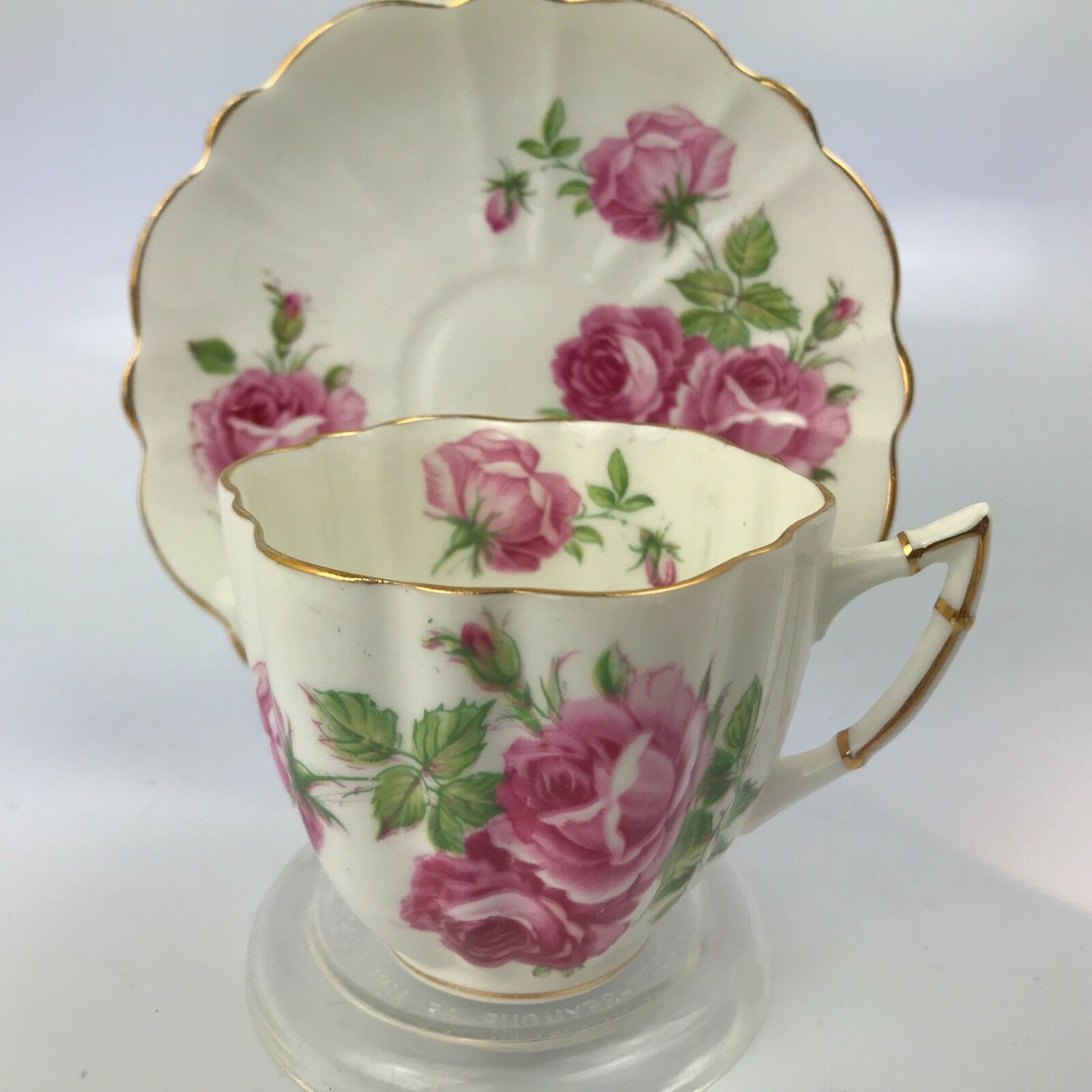 Title (ebay affiliate link): Victoria C & E Tea Cup and Saucer Bone China England Pink Rose Signed