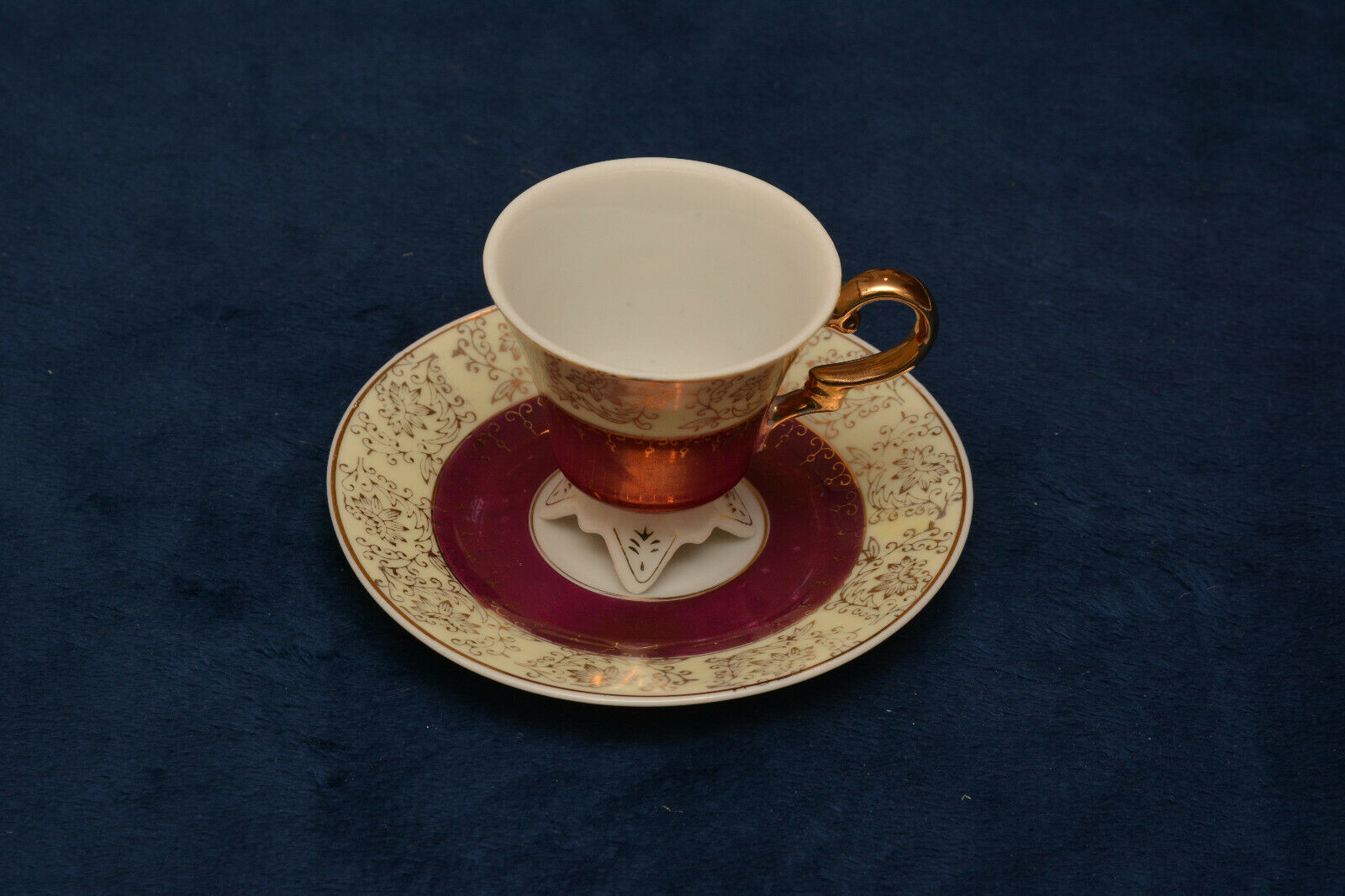 Title (ebay affiliate link): Vintage Richard Japan Mini Tea Cup and Saucer Set - Gold/Floral Pattern