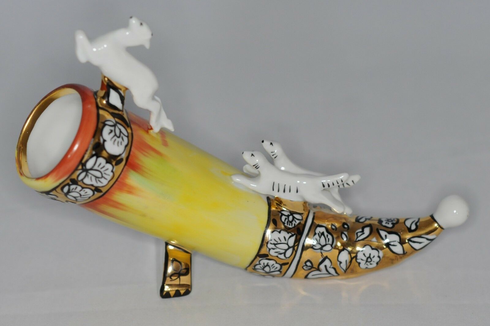 Vintage Korosten Figurine Hunting Drinking Horn Made in USSR