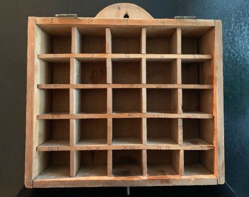 Antique Wooden Box Numbered Sections Hanging Printers Drawer Letterpress