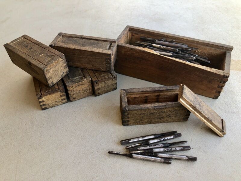 Title (ebay affiliate link): HUGE Lot Vintage Taps Machinist Tools Dovetail Wood Boxes 80+ Pieces King Card!!