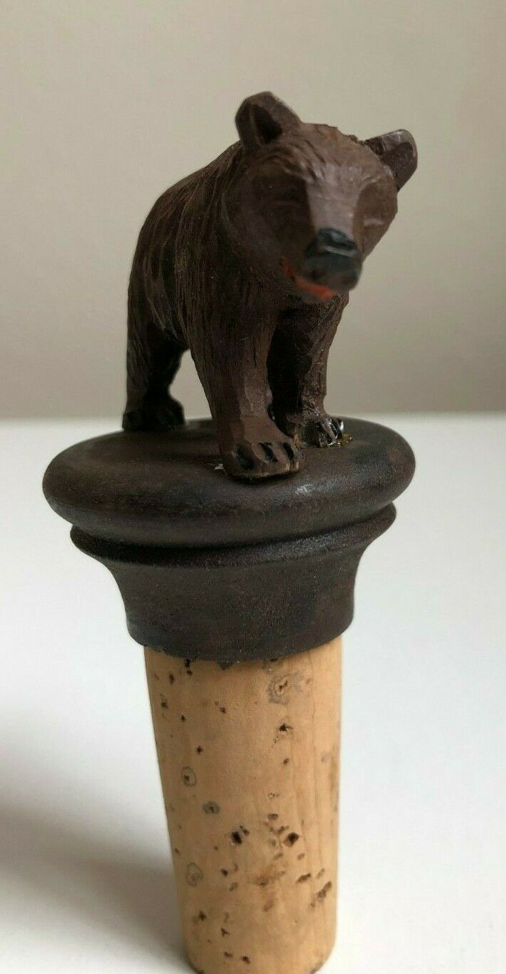 Vintage Carved Walking Wooden Bear Cork Stopper Switzerland