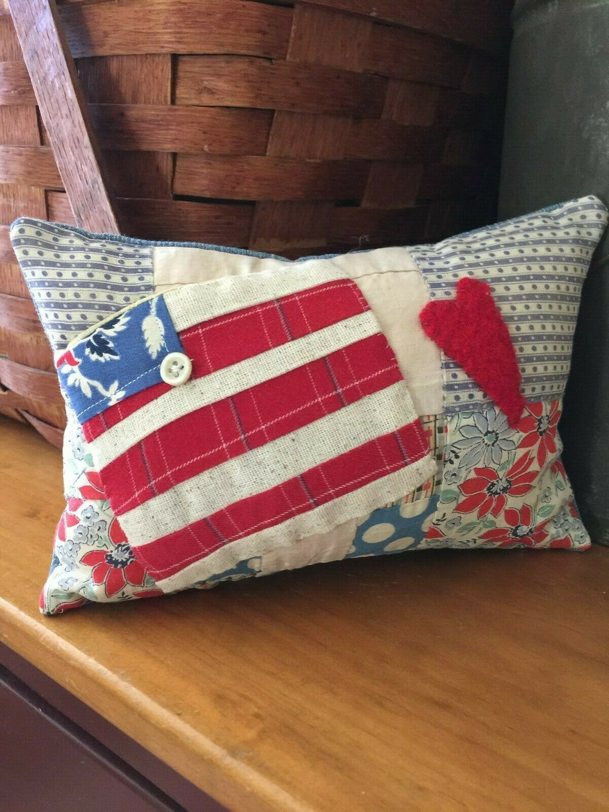 Title (ebay affiliate link): Primitive Stitchery Prim Flag Ornie Vintage Old Quilt Red White and Blue