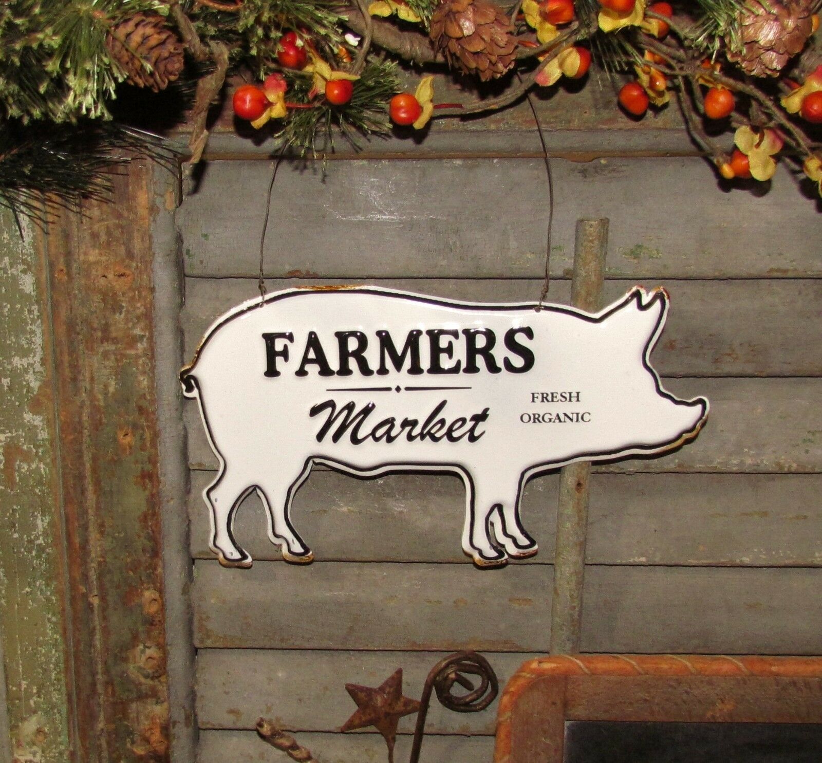 Primitive Antique Vtg Style Farm House Pig Hog Embossed Hanging Metal Tin Sign