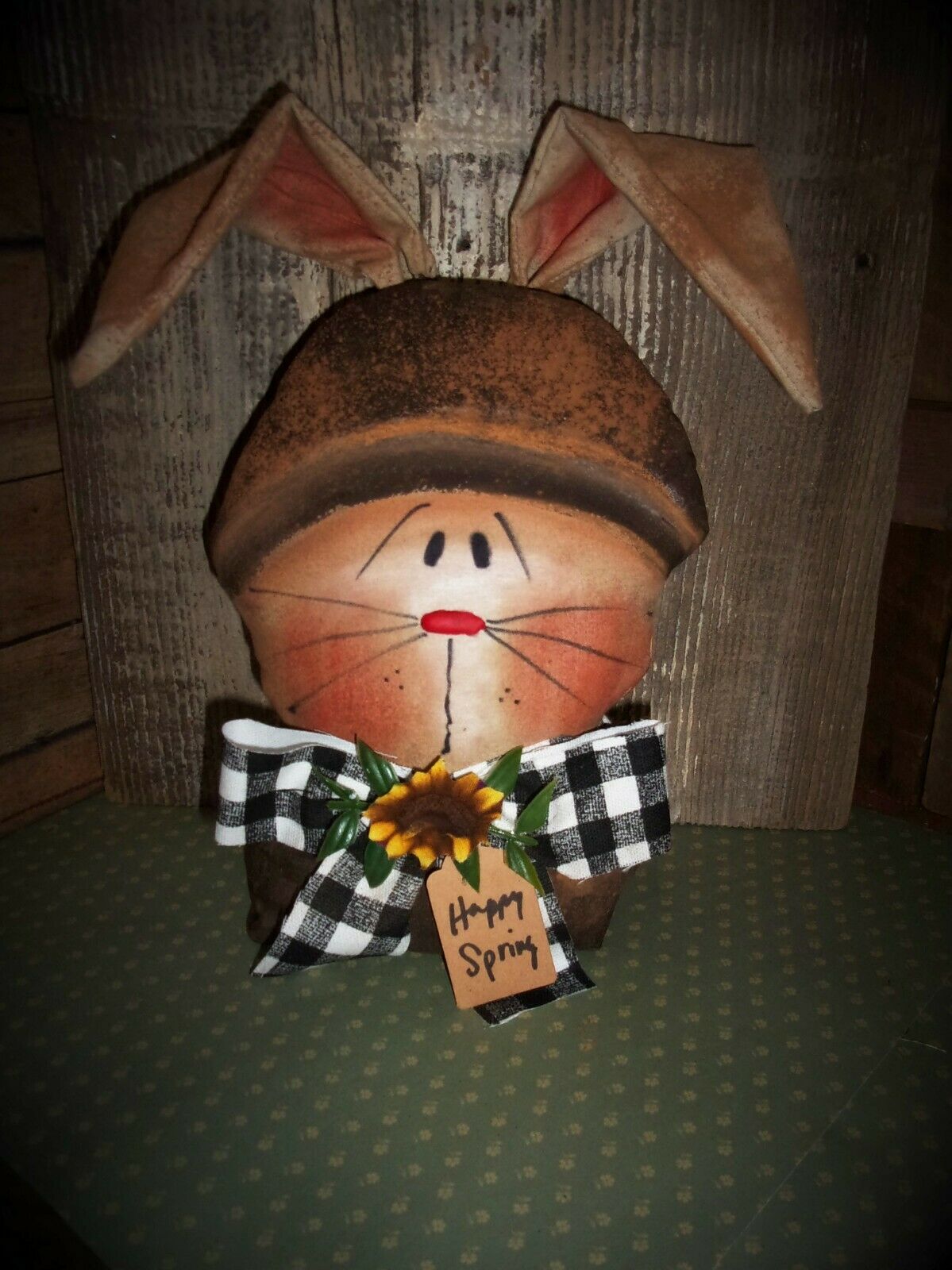 Title (ebay affiliate link): *Primitive 10x8in LARGE BUNNY HEAD W/HAT Fabric Country old rusty doll*