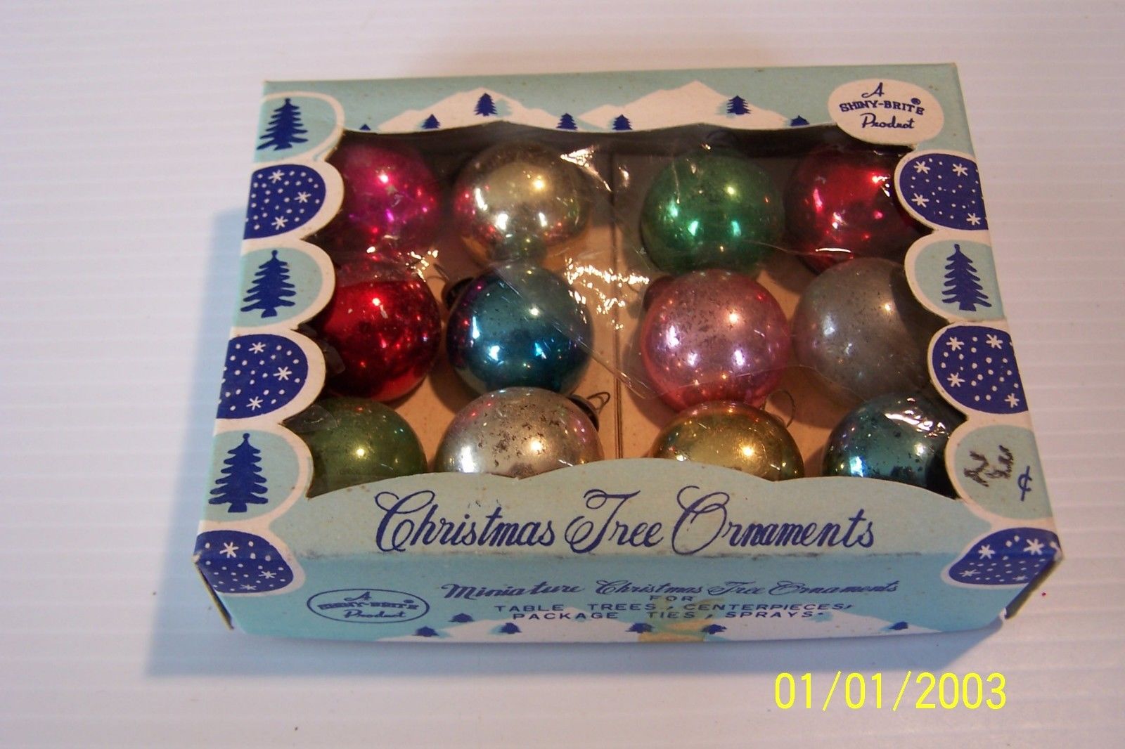 Title (ebay affiliate link): Vintage Box of Shiny Brite Feather Tree Christmas Ornaments