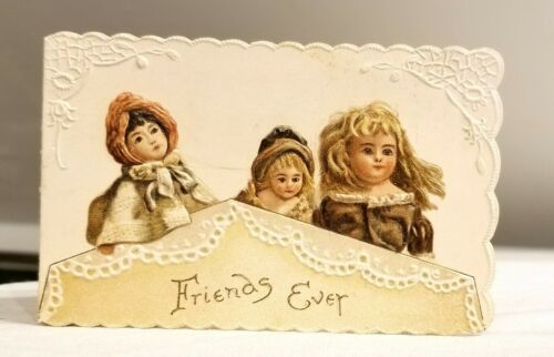 Title (ebay affiliate link): Victorian Girls Chromo on Deeply Embossed bi-fold Xmas Card. Early 1900s. USA