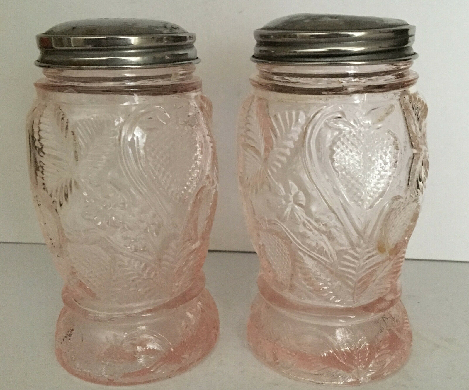 Vintage Pink Depression Glass Salt & Pepper Shakers Set Strawberry Design