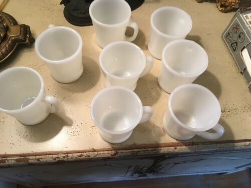 Title (ebay affiliate link): Lot Of 8 Anchor Hocking Fire King D Handle White Milk Glass Coffee Cups Mugs