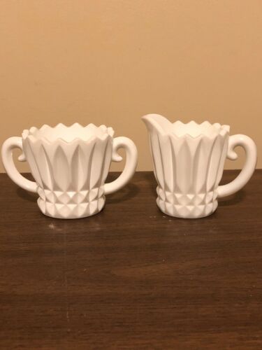 Vintage White Milk Glass Diamond Cut Sugar And Creamer