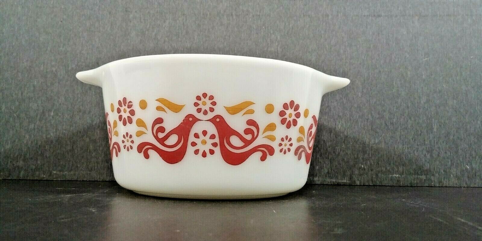 Title (ebay affiliate link): Vintage Pyrex Red Bird Friendship Milk Glass Bowl 1 QT Casserole NO LID