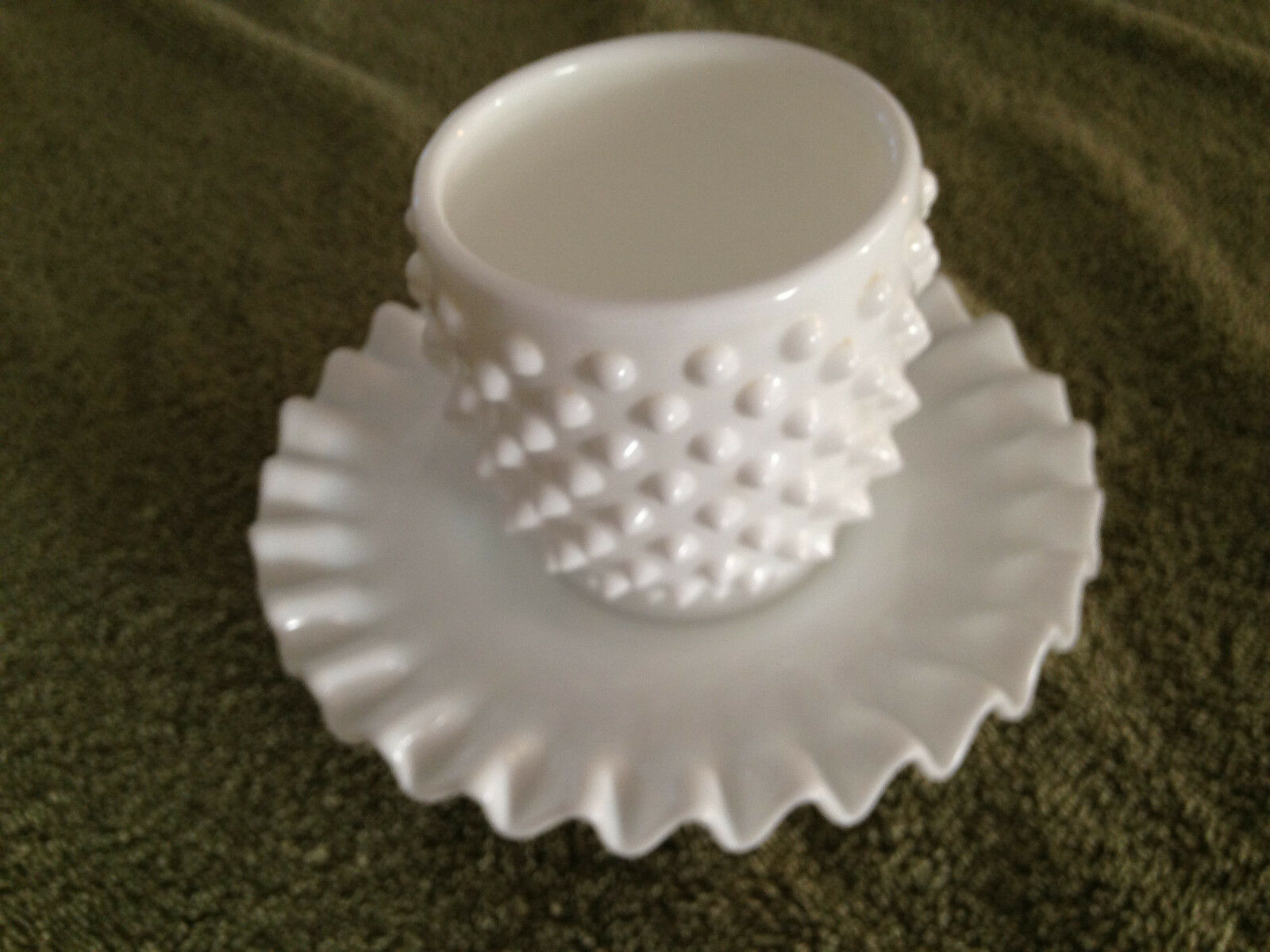 Title (ebay affiliate link): FENTON VINTAGE HOBNAIL WHITE MILK GLASS SIGNED MAYO CONDIMENT BOWL & PLATE