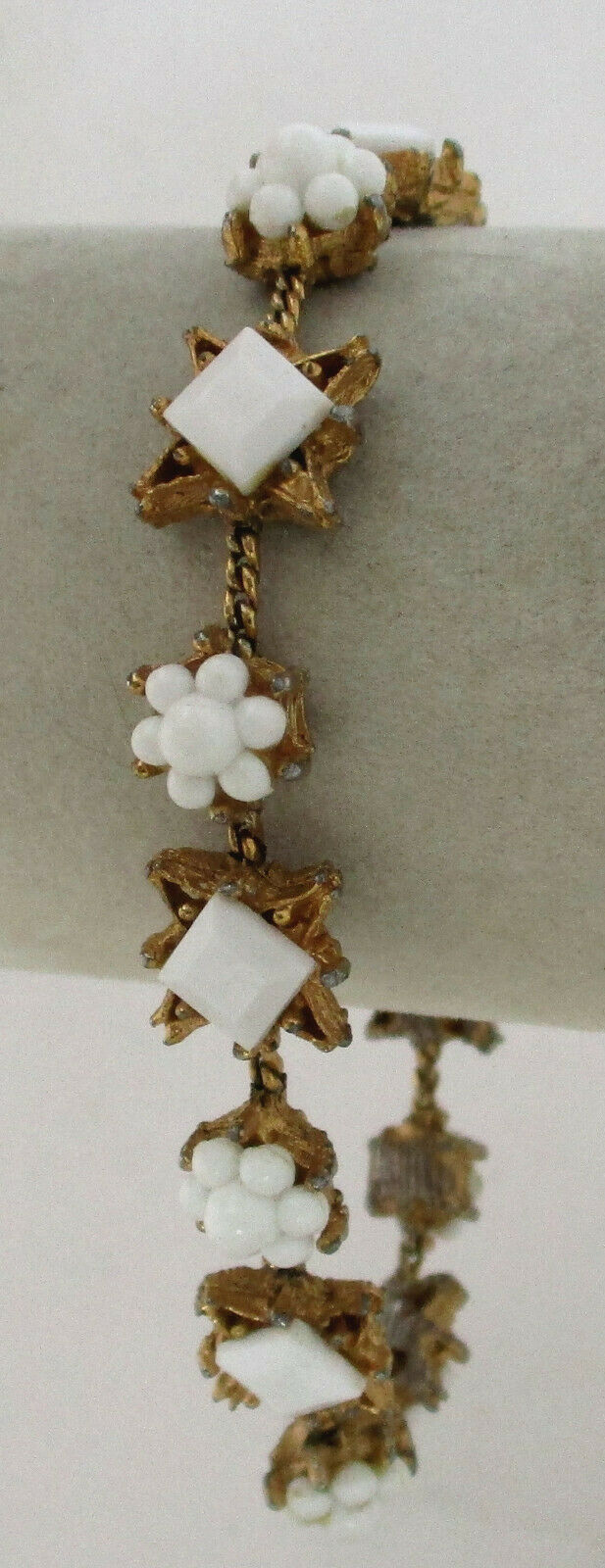 Vintage Milk Glass Rhinestone Bracelet LJM