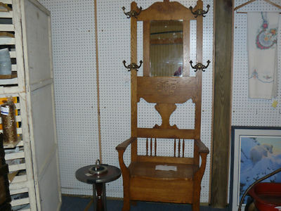 HALL TREE OAK W/ MIRROR AND SEAT EX.