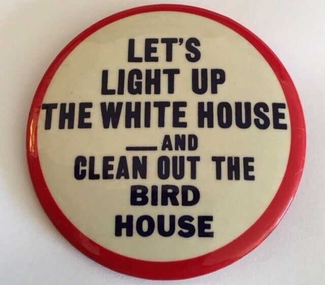 Title (ebay affiliate link): Anti-LBJ/Pro-Goldwater "Let''s Light White House-Clean Out the Bird House Pin