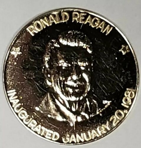 Title (ebay affiliate link): 1981 Ronald Reagan, Danbury Mint 10kt Gold Inaugural Medal *MINI ==Weighs .8g==