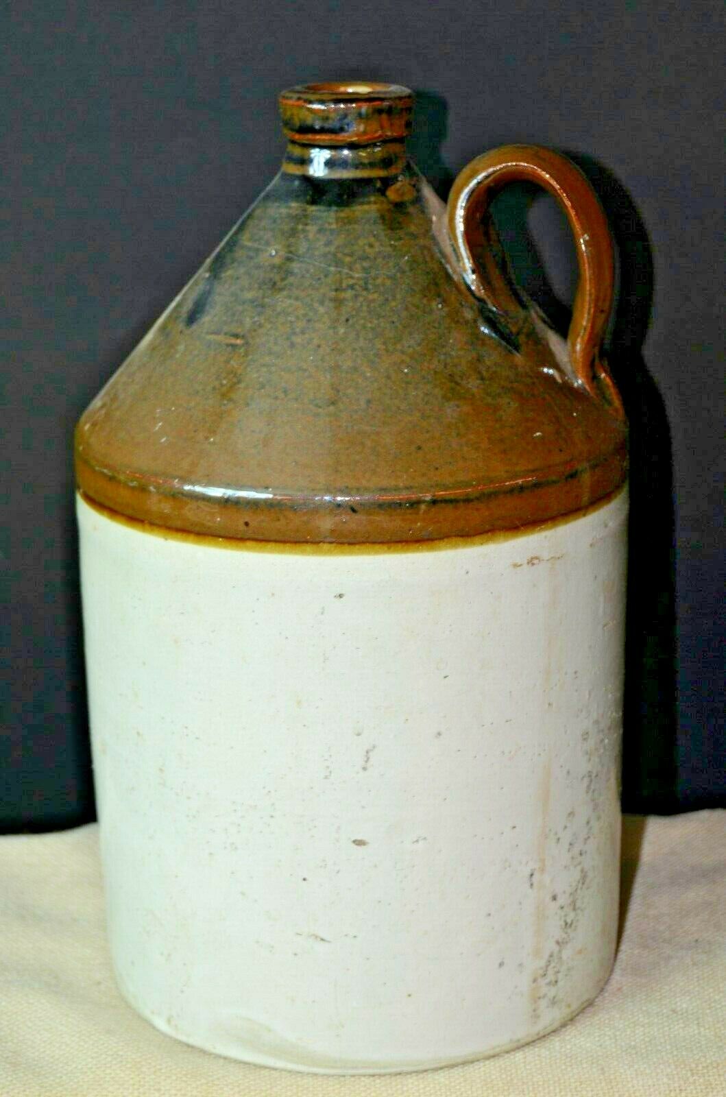 VINTAGE ANTIQUE SLIP GLAZED 2 TONE STONEWARE JUG w/ HANDLE possible 1800''s piece