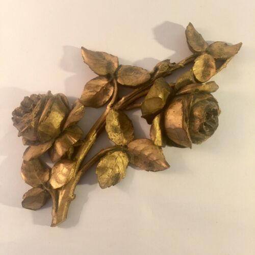 Vintage Carved Wood Rose Decorative Fragment, Gilt Wood