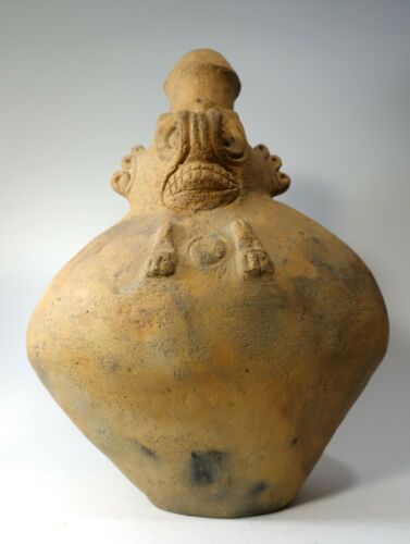 Title (ebay affiliate link): REPRO Pre Columbian 13.5" Pottery Face with Teeth Spout Vessel Pot Jug