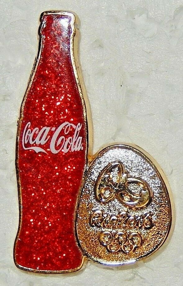 Title (ebay affiliate link): Rio 2016 Summer Olympics Coca Cola Sponsor Glitter Coke Bottle Pin