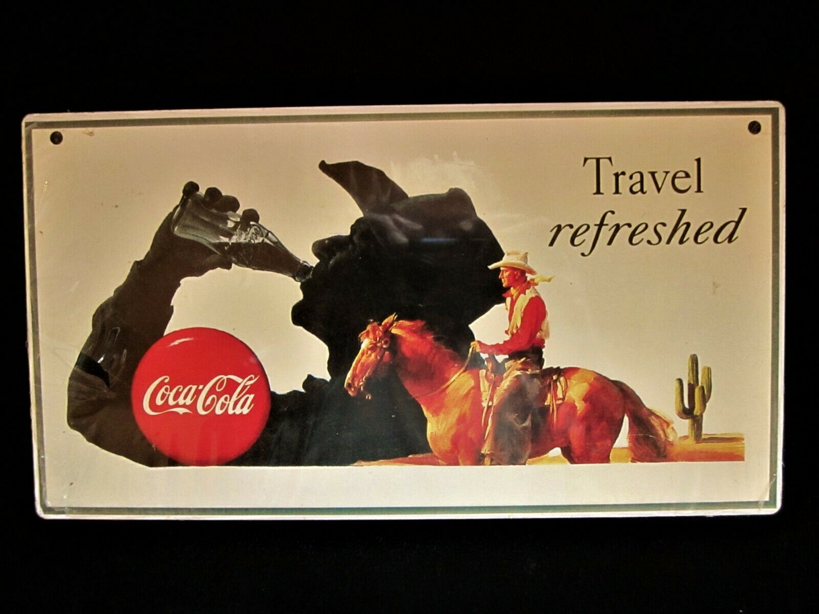 Title (ebay affiliate link): Coke / Coca Cola Tin Sign Travel Refreshed - 10" x 5 1/2"