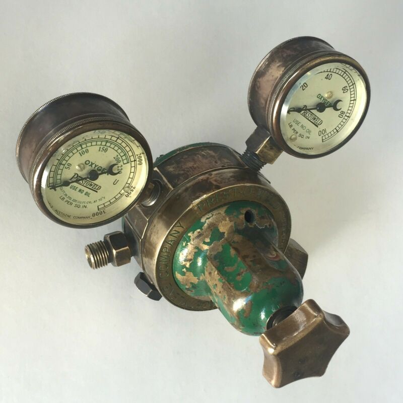 Title (ebay affiliate link): VINTAGE BRASS OXYGEN PRESSURE GAUGES AND REGULATOR STEAMPUNK