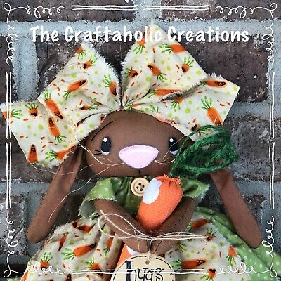 Title (ebay affiliate link): * Primitive raggedy Ann doll SPRING rabbit CHOCOLATE BUNNY holding carrot EASTER