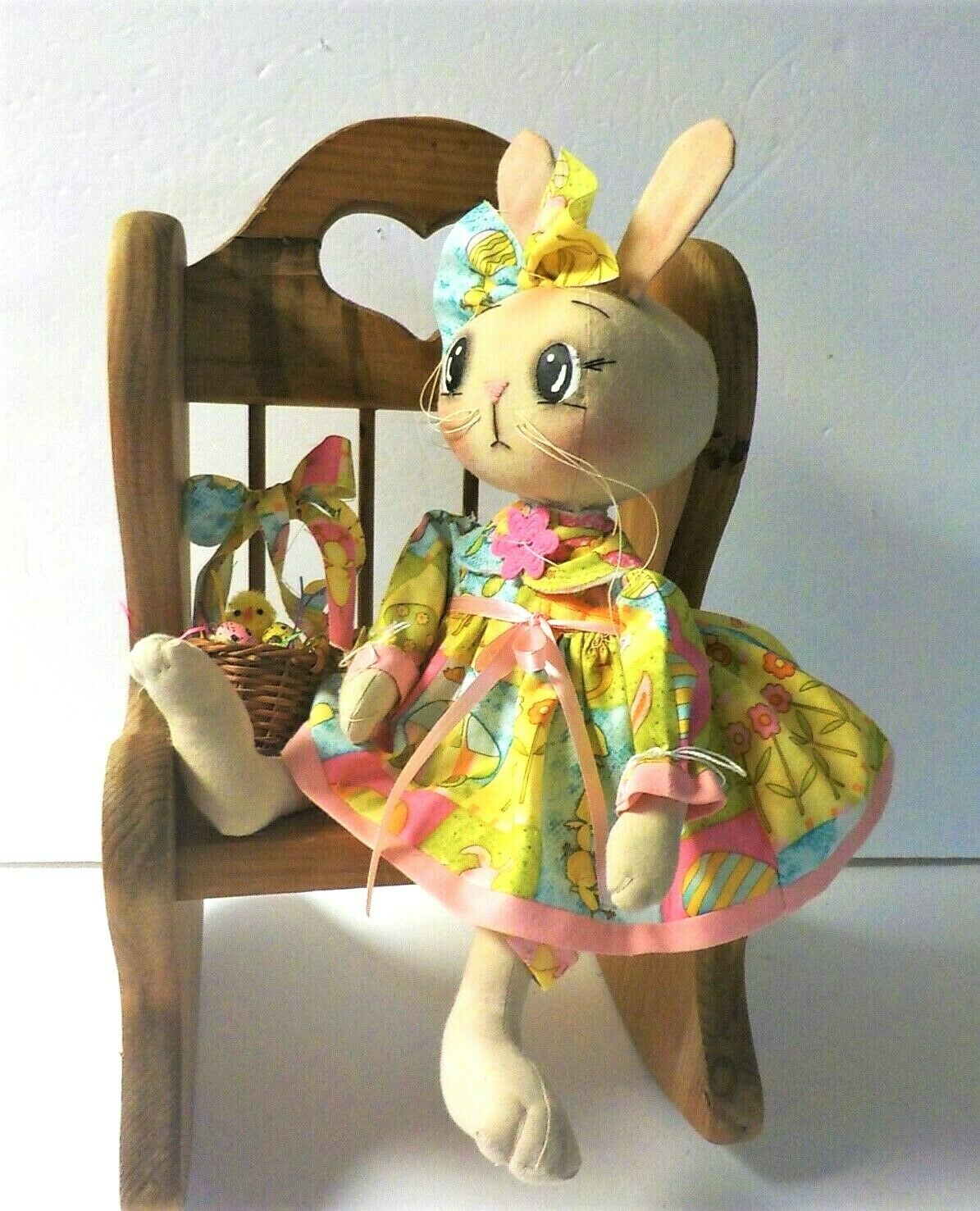 Primitive HM RAGGEDY CLOTH EASTER BABY BUNNY RABBIT DOLL "FAYE" EASTER BASKET