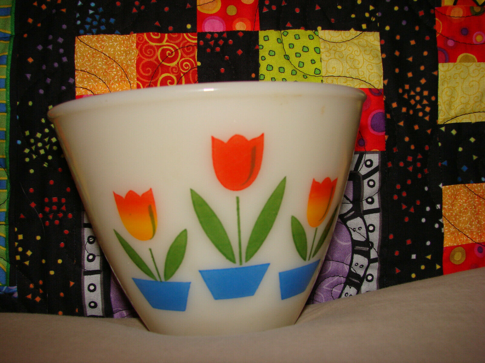 Title (ebay affiliate link): Vintage Fire King Tulips Bowl 5 1/2" x 4" Milk Glass Mid Century Modern