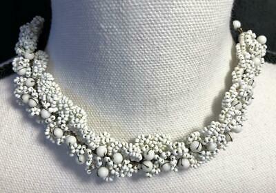 Vintage Milk Glass Seed Bead Cluster Choker Style Necklace F2