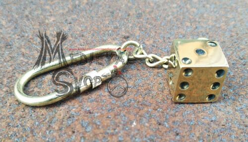 Nautical Solid Brass Dice ( Lido Dice ) Key Chain / Keyring / Neckless Vintage